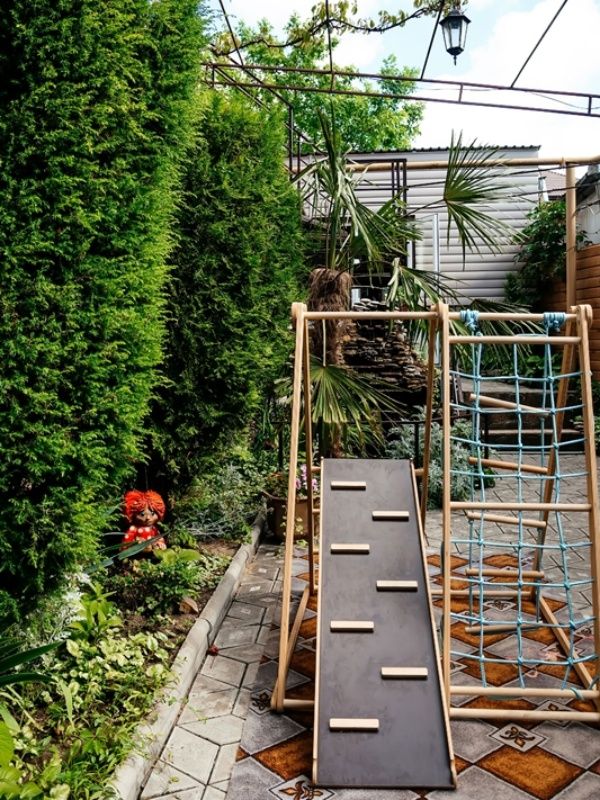 Благоустроенная территория: утопающий в зелени и цветах закрытый двор. Оазис спокойствия - никаких шумных тусовок, только отдых и релакс. Бассейн 3×6 м. с кристально чистой водой и зоной для загара. Детская площадка с яркими горками и качелями.