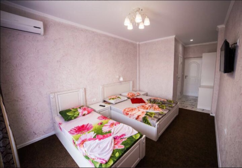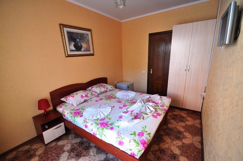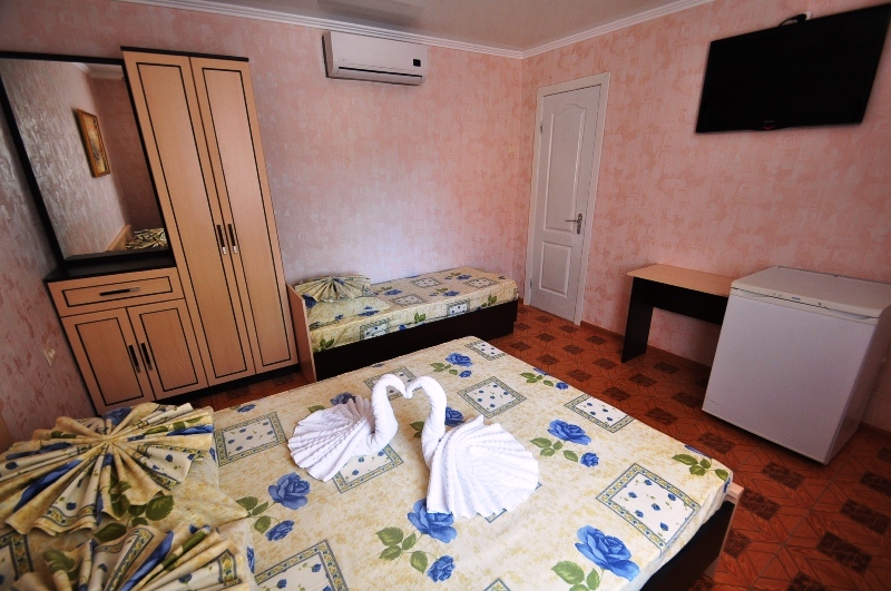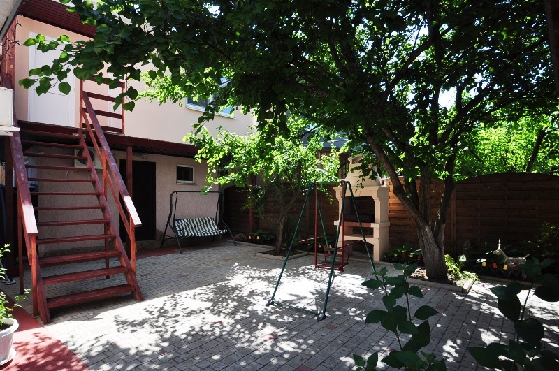 | Отдыхали в июне-июле 2013 года. Отличный гостевой дом, до моря идешь по прямой улице, через парк развлечений Паралия. Было очень много детей и приезжали 2 раза в неделю аниматоры. Вечером смотрели мультики на проекторе во дворе. С посудой для готовки немного была проблема, кто успел тот и взял) Но это я думаю во многих гостевых домах. А в целом очень понравился гостевой дом. |