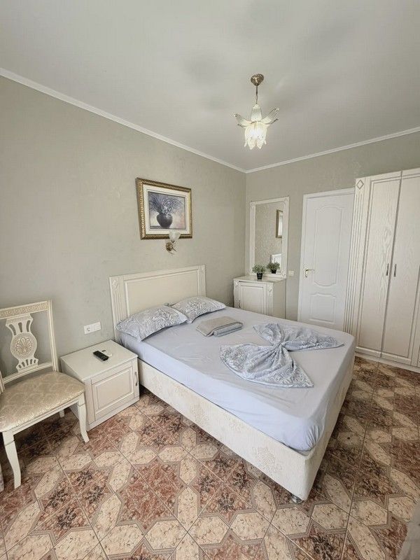 | Мебель: | полутороспальная кровать, шкаф, прикроватные тумбочки, журнальный столик, вешалка, зеркало