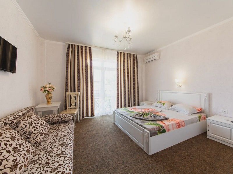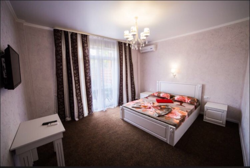 | Мебель: | односпальные или двуспальная кровати, диван-кровать, кресла, шкаф, стулья, прикроватные тумбочки, журнальный столик, вешалка, зеркало