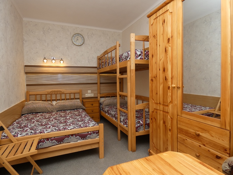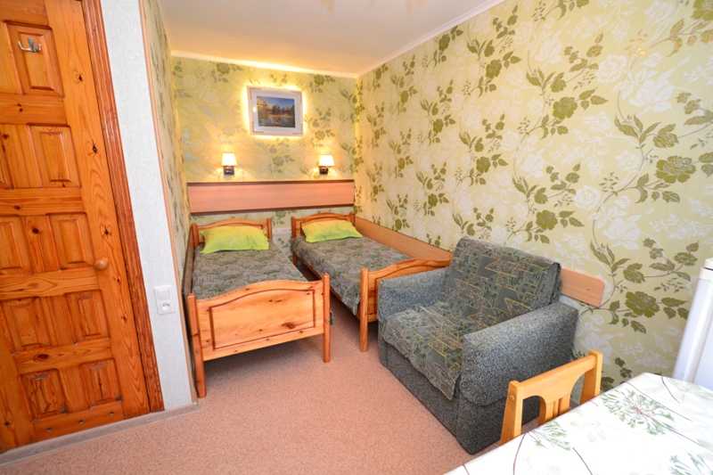 | Мебель: | односпальные или двуспальная кровати, платяной шкаф, стулья, прикроватные тумбочки, стол, зеркало |