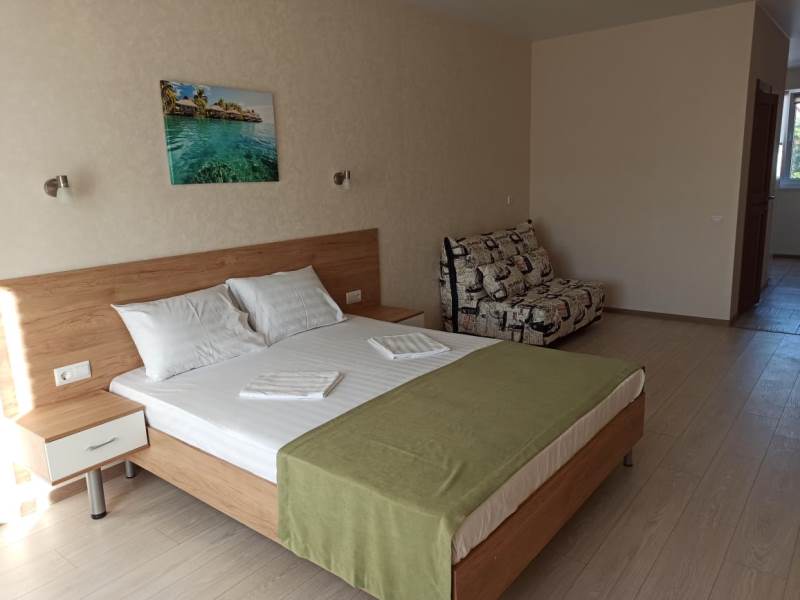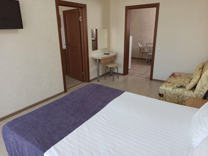 | Удобства: | кондиционер, холодильник, телевизор, интернет, фен, эл. чайник |