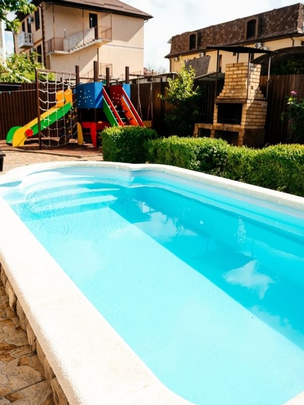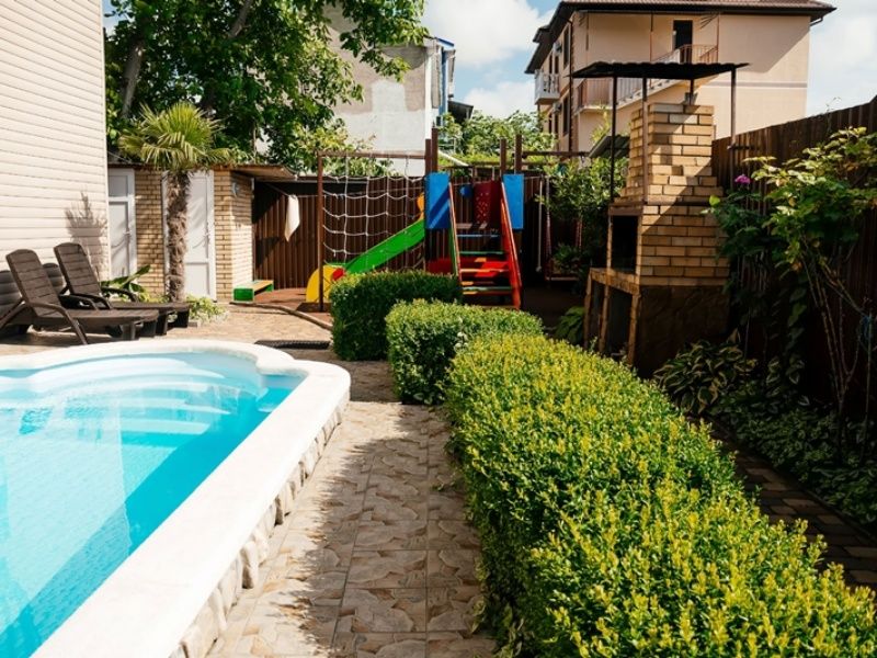 Благоустроенная территория: утопающий в зелени и цветах закрытый двор. Оазис спокойствия - никаких шумных тусовок, только отдых и релакс. Бассейн 3×6 м. с кристально чистой водой и зоной для загара. Детская площадка с яркими горками и качелями.