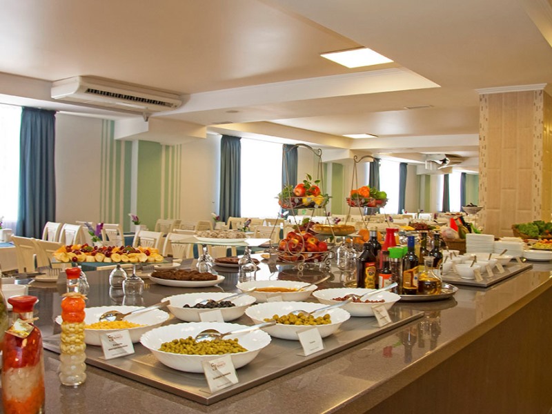 - питание по системе "ALL INCLUSIVE" с 28 апреля по 15 октября ежегодно: 3х-разовое питание по системе "шведский стол", промежуточные станции питания, разнообразие алкогольных и безалкогольных напитков (администрация отеля оставляет за собой право перейти на комплексное питание при загрузке отеля менее тридцати пяти человек);