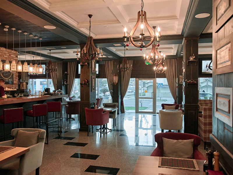 Лобби-бар (Lobby bar). Современный Лобби-бар открыт на протяжении всего дня. Удобные диванчики и кресла, приятная музыка и Wi-Fi делают Лобби-бар привлекательным местом для отдыха в любое время. В баре гости могут заказать пенный напиток, классические коктейли, бокал красного, белого или игристого напитка в сочетании с легкими закусками или десертами. Лобби-бар - это идеальное место для отдыха после дороги или для деловой встречи "без галстуков".