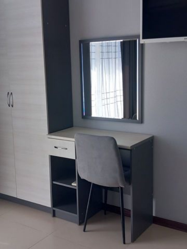 | Мебель: | двуспальная кровать, шкаф, прикроватные тумбочки, зеркало, журнальный столик |