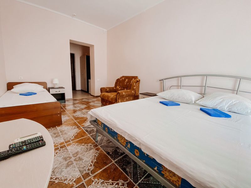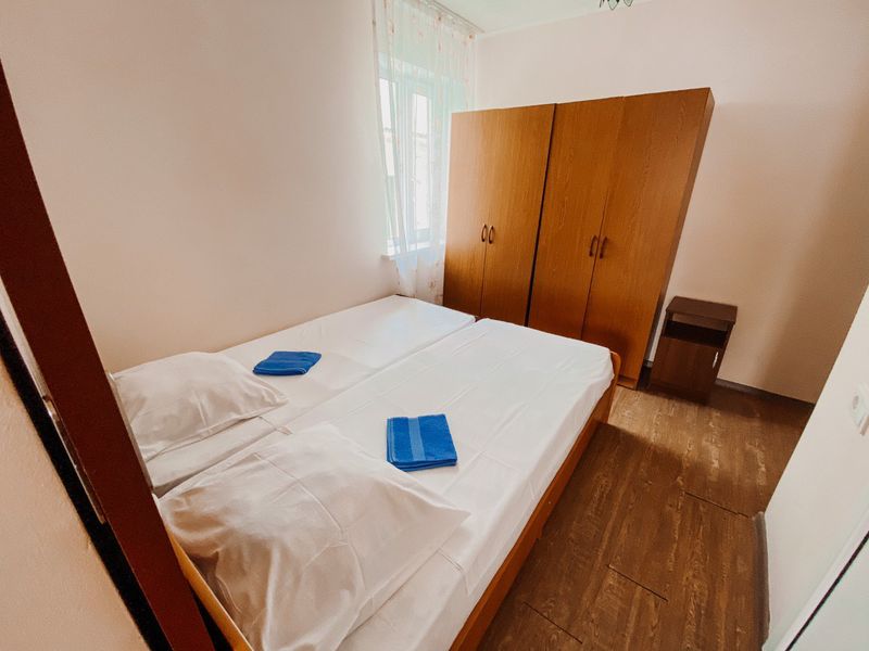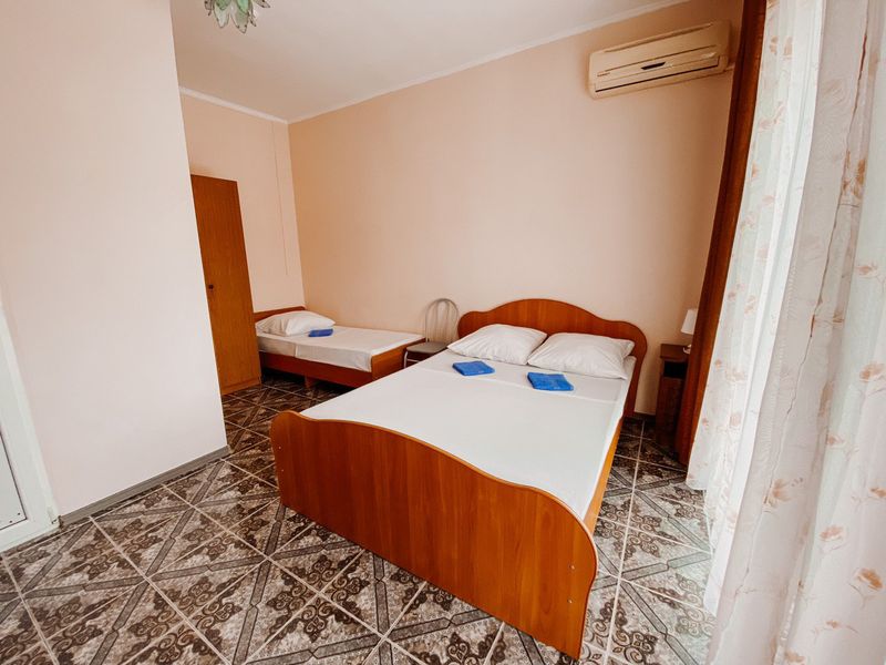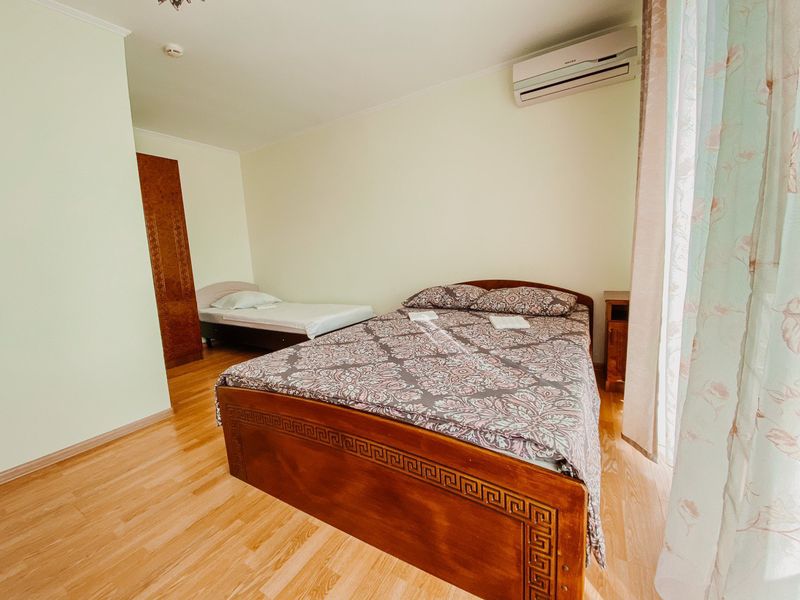 | Мебель: | односпальные и двуспальная кровати, шкаф, тумбочки, журнальный столик, вешалка |